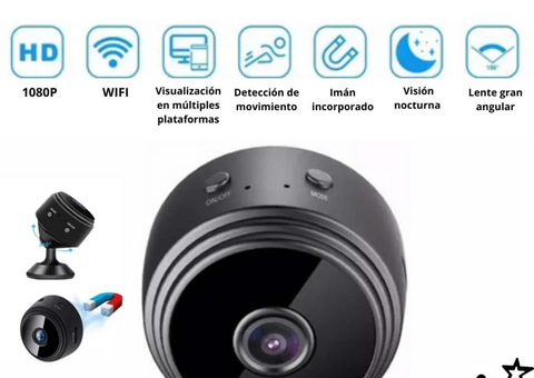 Mini cámara WiFi con vision nocturna 1080p;App: V380 Pro;Capacidad de batería: 300mAh;Visión nocturna y detector de movimiento;